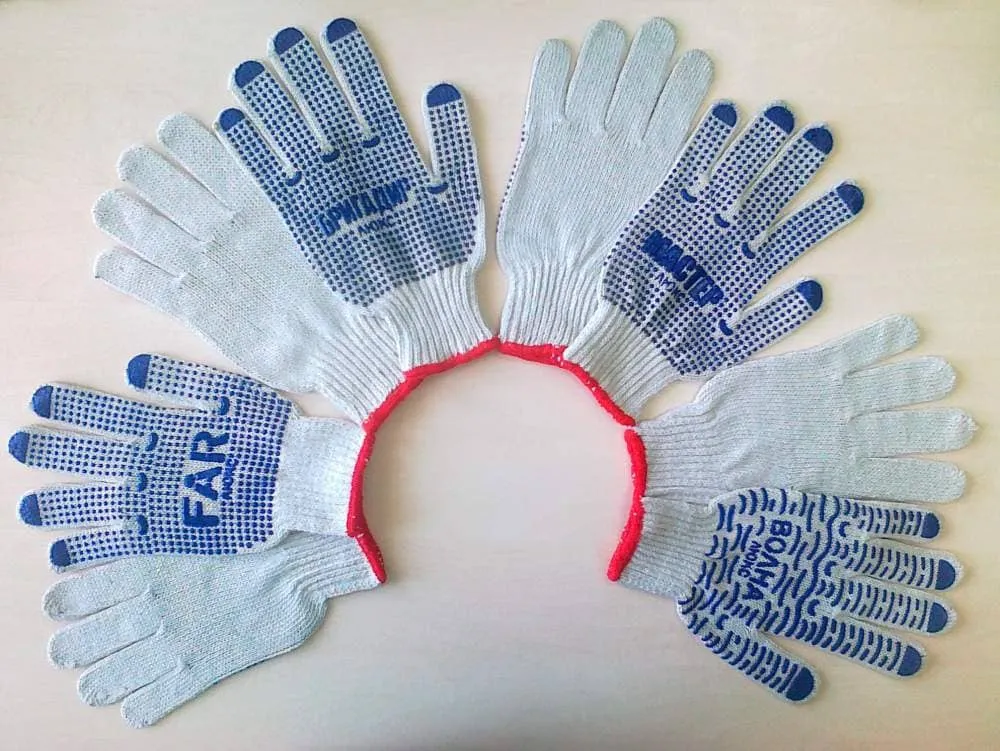 Изготовлены из хлопчатобумажной пряжи с добавлением полиэфирной нити. Плотная вязка обеспечивает наилучшую защиту рук от загрязнений. ПВХ напыление на ладони и пальцах обеспечивают антискользящий эффект, а также препятствует быстрому истиранию перчаток. Отлично подходят для промышленных работ высокой интенсивности.